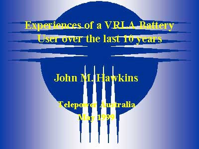 Let me say up front, that unlike other recent reports, the experience is not all bad. That is, this is not going to be a bad luck story. Indeed, the User - Telstra - Australia’s single largest full service telco operator, now has a policy to use VRLA batteries unless there is a business case not to do other wise.